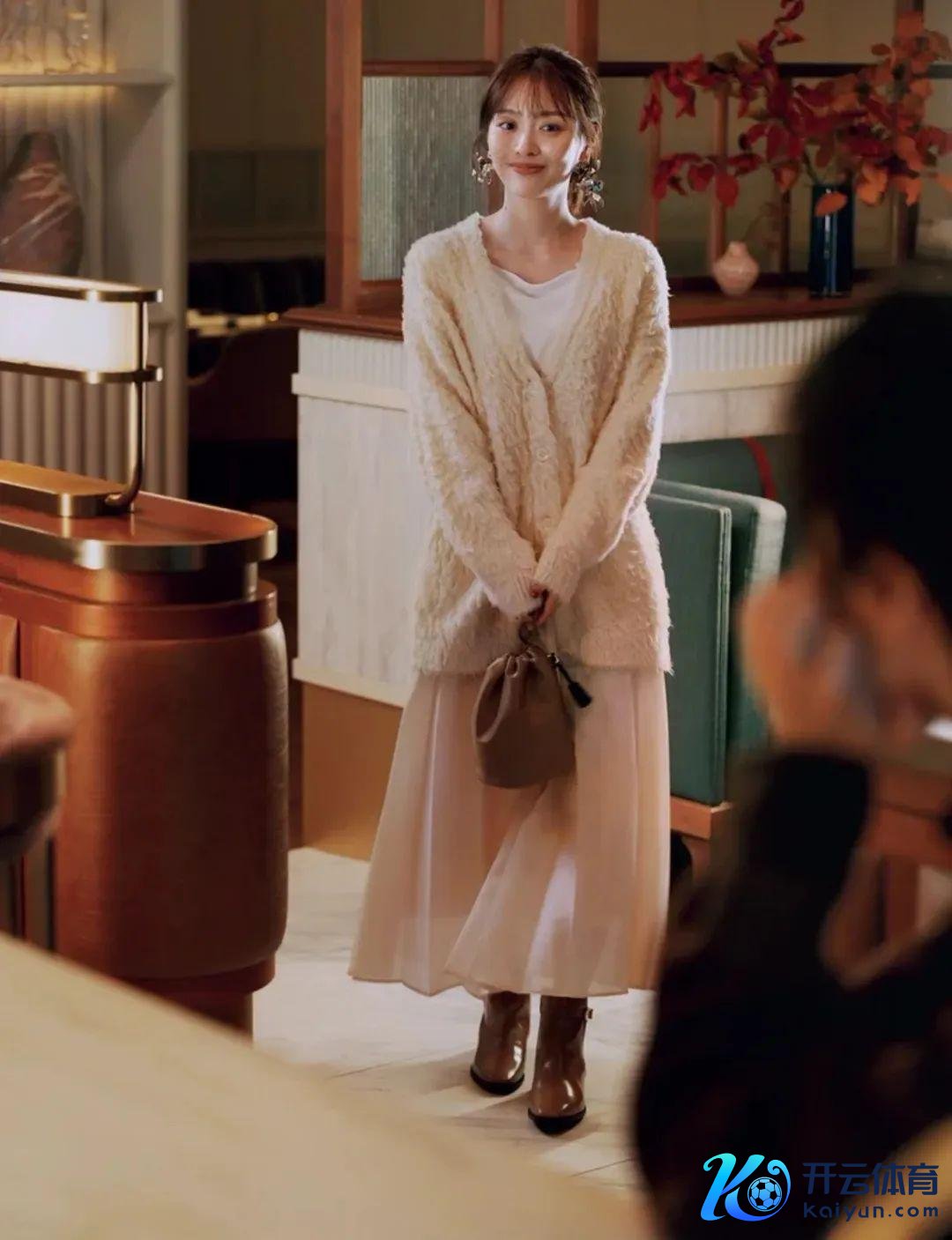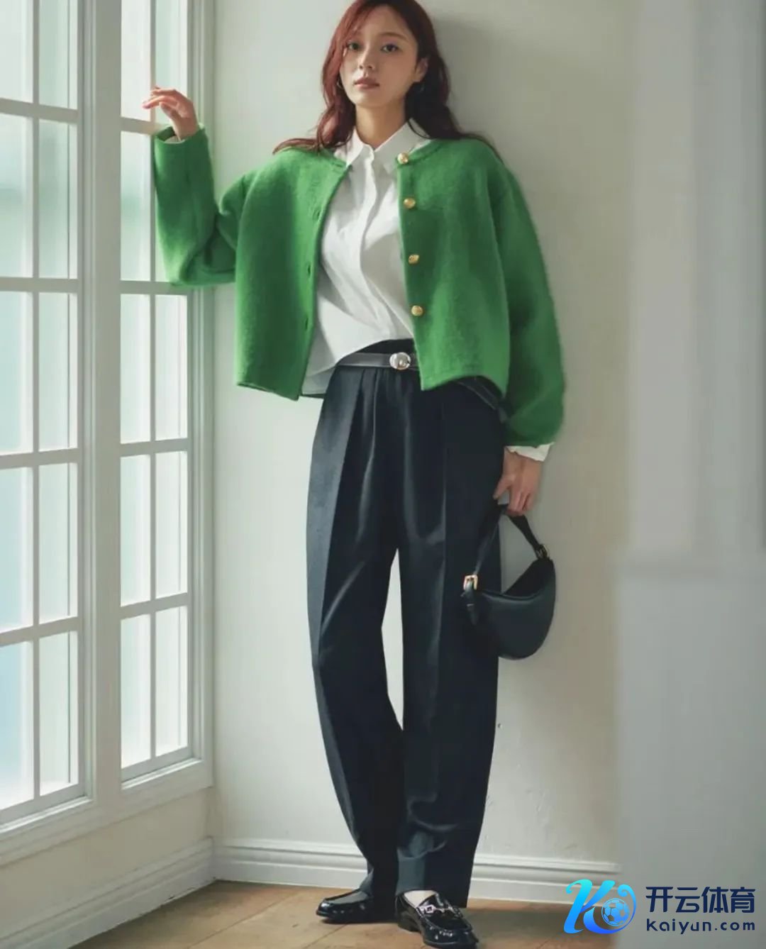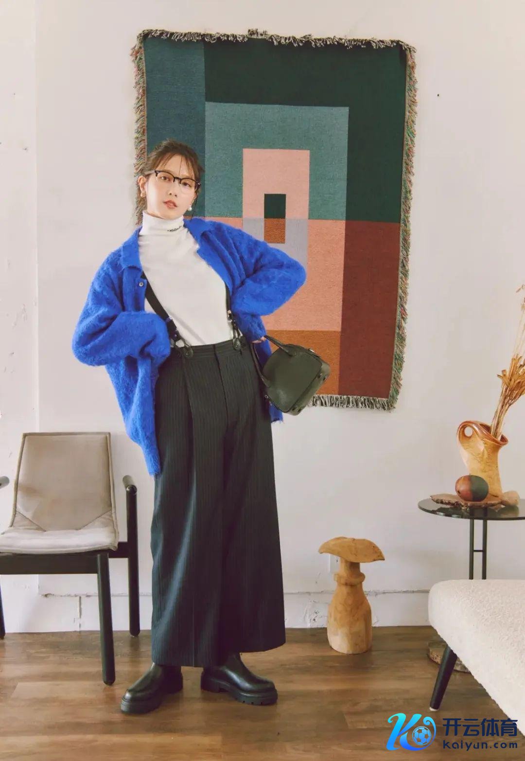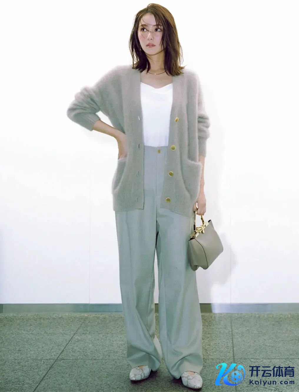 穿上外衣,也因为开衫的纽扣和开襟,在视觉上看起来深邃又纤细.