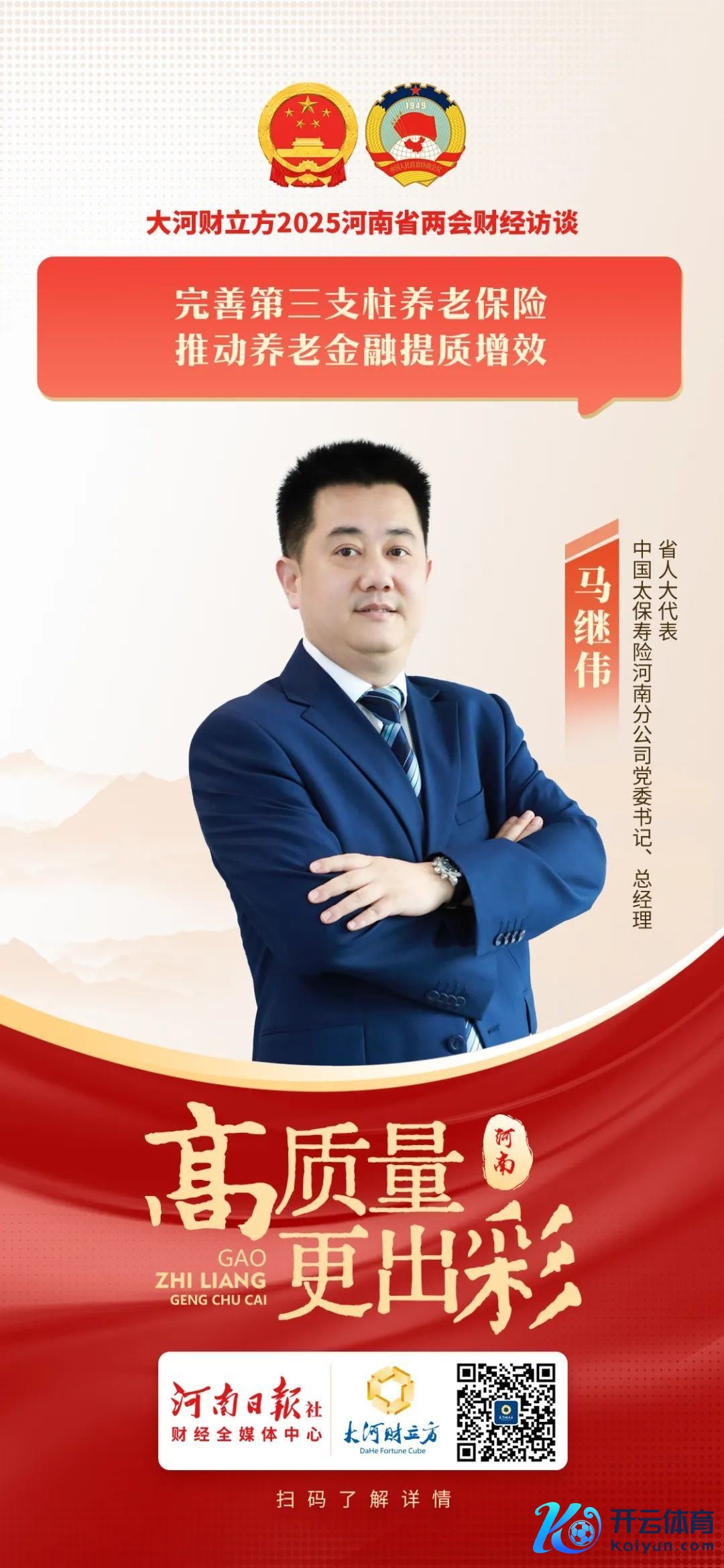 在河南省两会行将召开之际,省东谈主大代表,中国太保寿险销售总监,河南分公司党委文书、总司理马继伟禁受了大河财立方记者专访。他线路,在现时我国东谈主口老龄化趋势下,应从强化监管引颈、加大政策扶持力度、提高公众判辨等方面,完善第三撑持养老保障,推动待业金融提质增效。