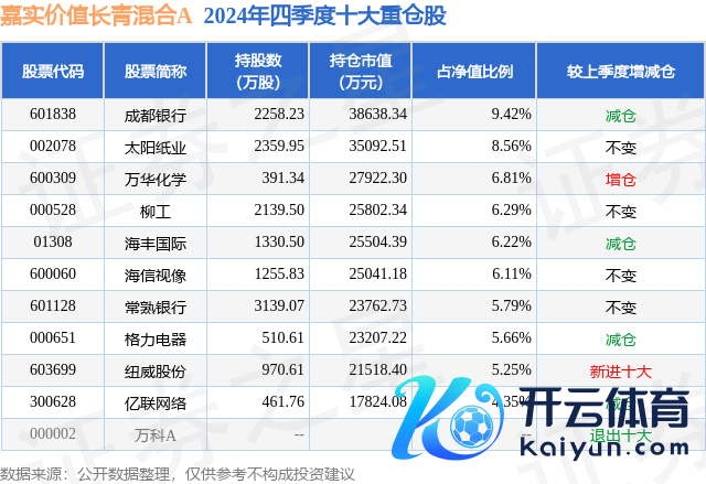 嘉不二价值长青羼杂A为羼杂型-偏股基金,字据最新一期基金季报浮现,该基金金钱建树:股票占净值比92.83%,无债券类金钱,现款占净值比7.49%。基金十大重仓股如下: